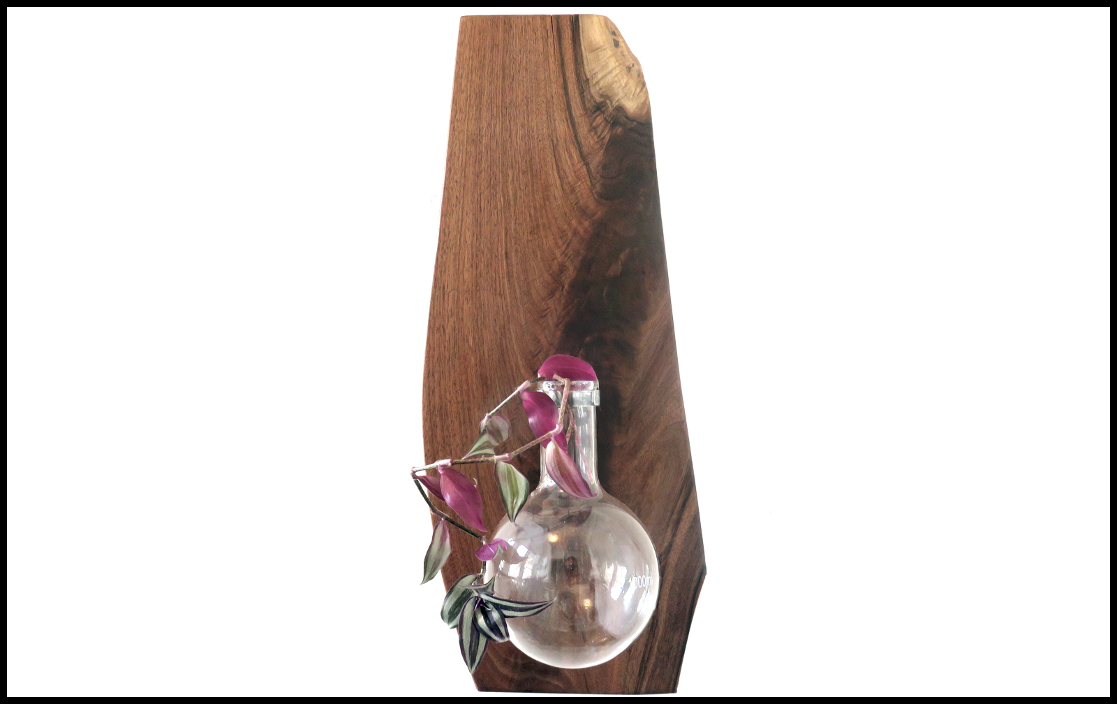Custom made hanging planter. Holds a 1000ml round bottom flask. Approximate size is 9" wide x 24" high x 3/4" thick.