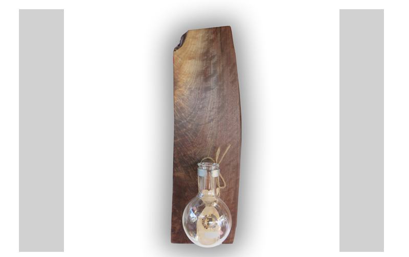 Custom made hanging planter. Holds a 500ml round bottom flask. Approximate size is 8" wide x 20" high x 3/4" thick.