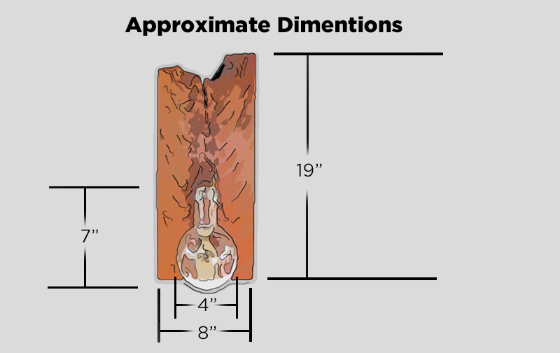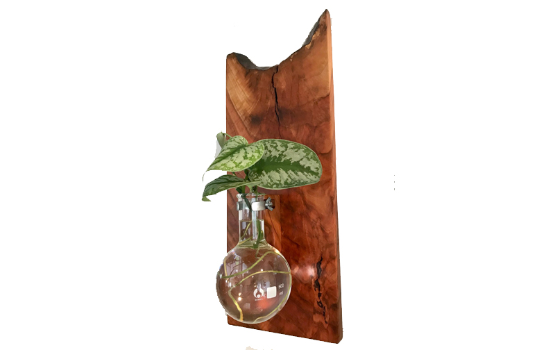 Custom made hanging planter. Holds a 500ml, 4" inch wide by 7" high round bottom flask. Approximate size is 8" wide x 19" high x 3/4" thick.