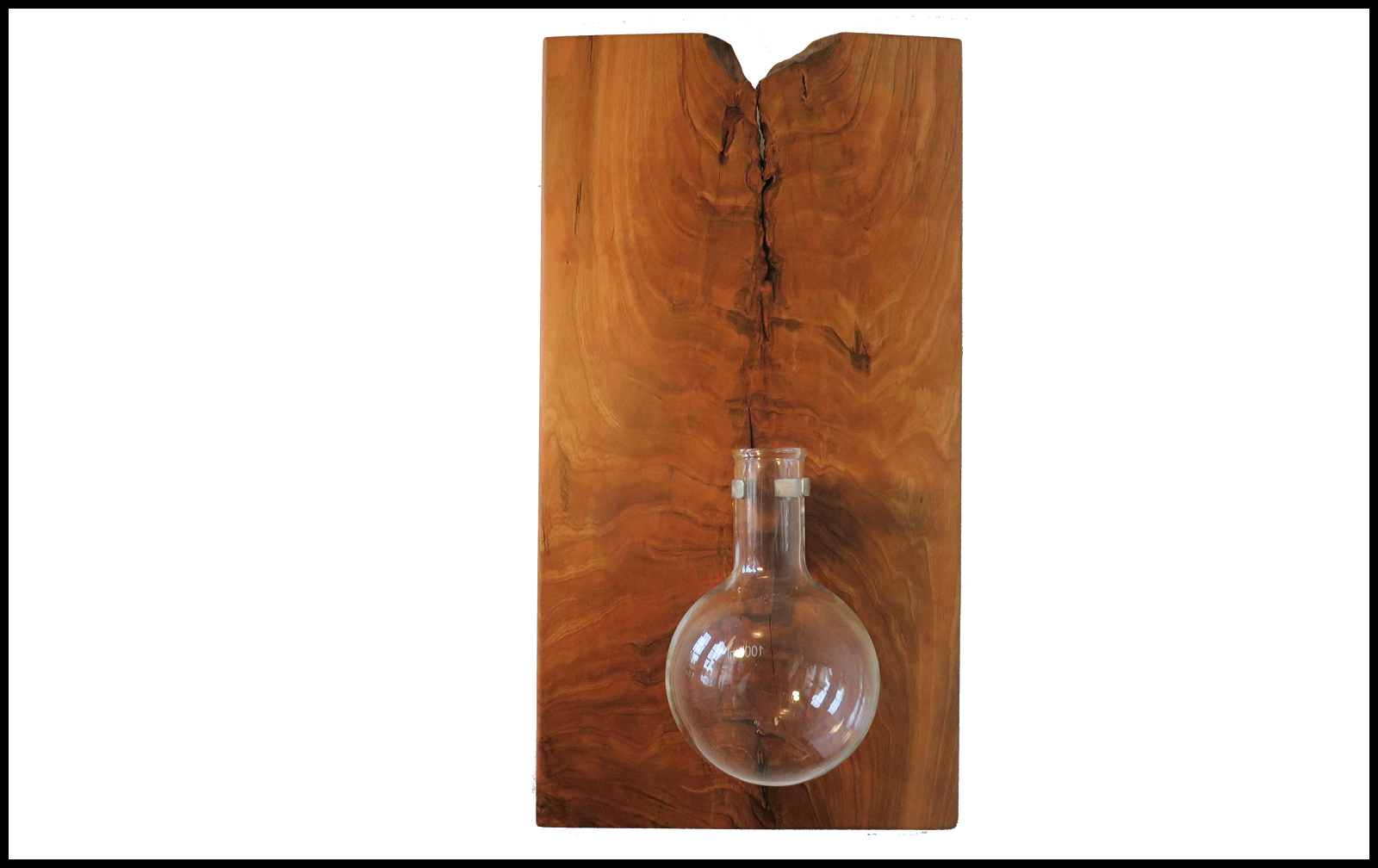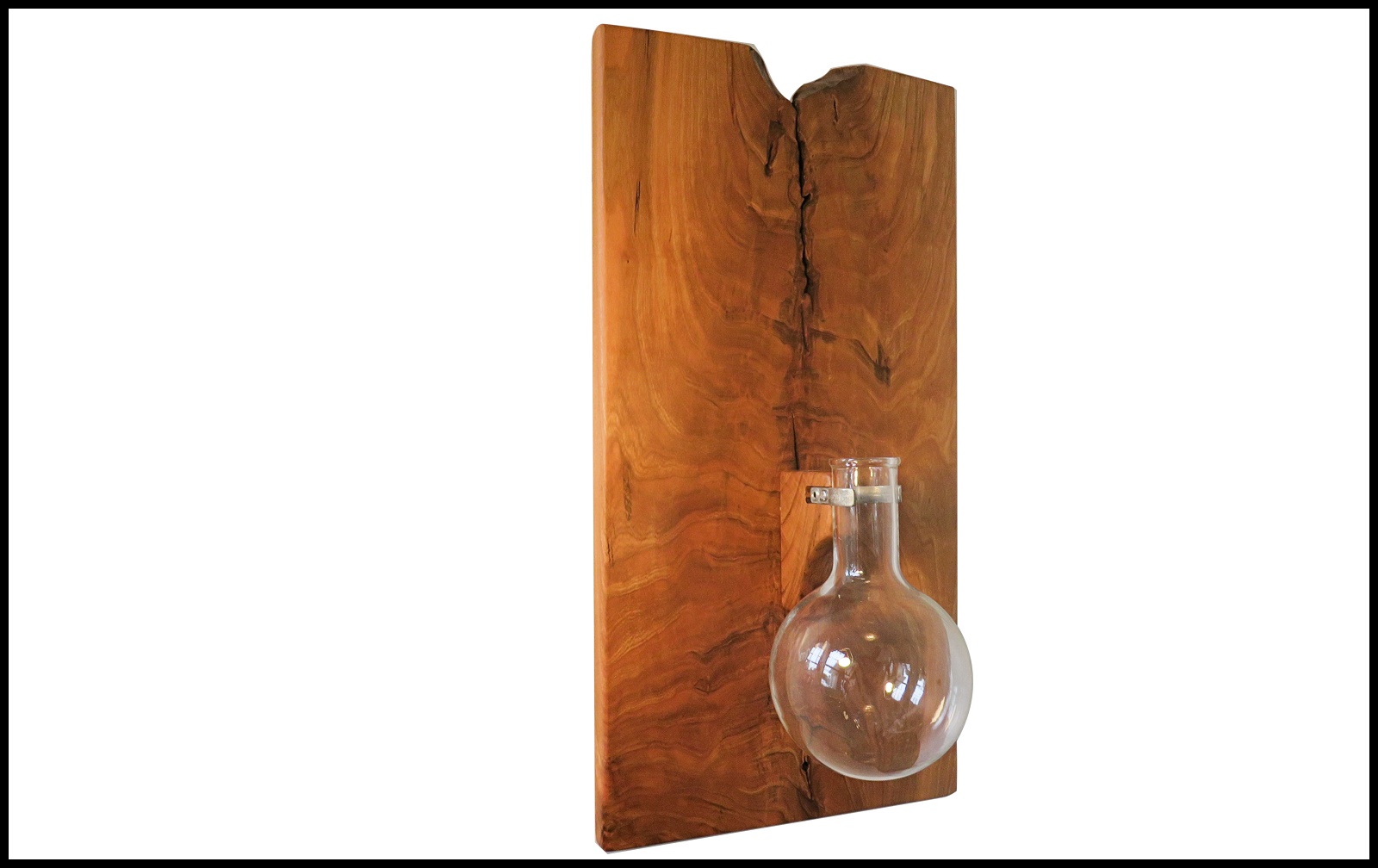 Large Cherry hanging planter. Holds a 1000ml round bottom flask. Approximate size is 12" wide x 24" high x 3/4" thick.