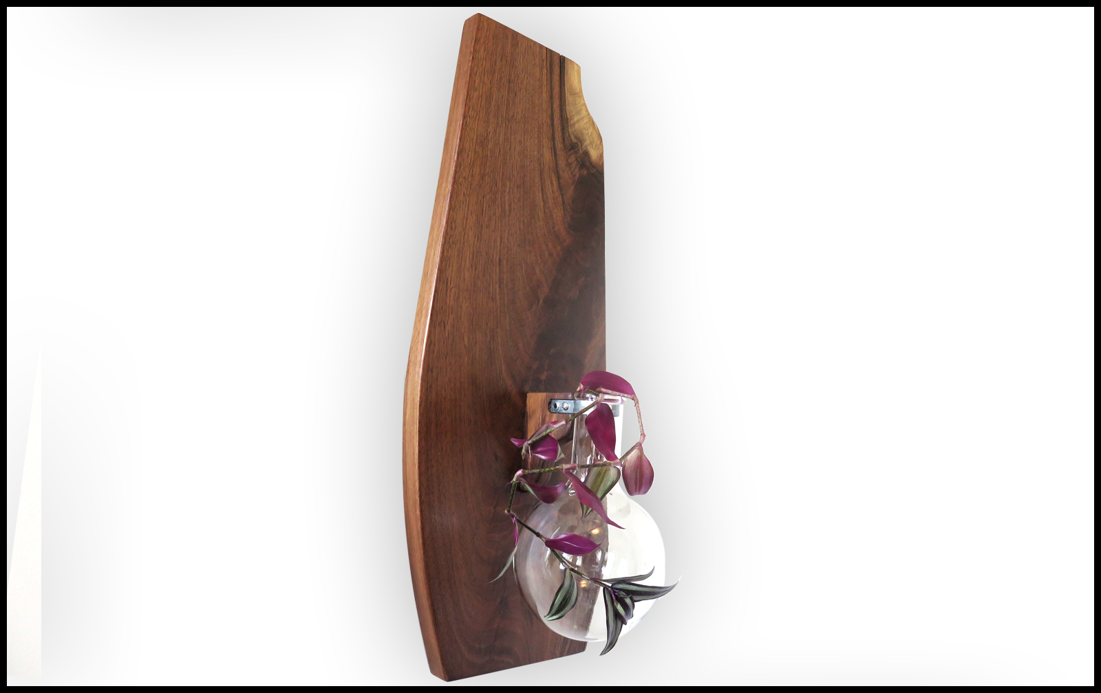 Custom made hanging planter. Holds a 1000ml round bottom flask. Approximate size is 9" wide x 24" high x 3/4" thick.